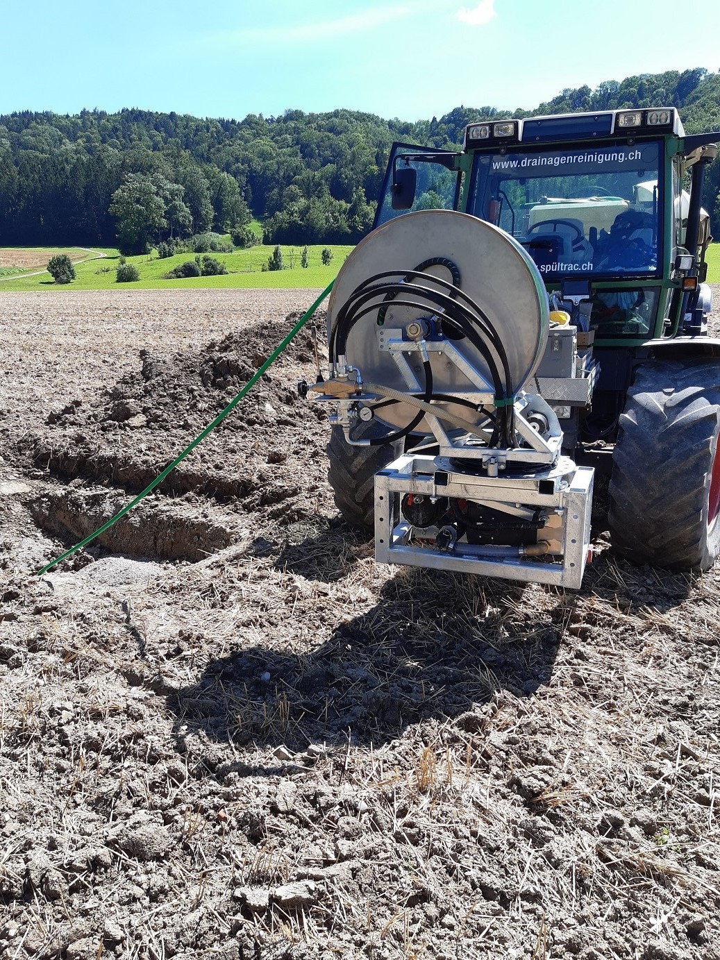 Durch unsere praktische Erfahrung in der  Drainagengeinigung haben wir festgestellt, dass es kein optimales Drainagenreinigungsgerät gibt. Gerade in der Schweiz sind doch die Anforderungen aufgrund der unterschiedlichen Böden und des verwendeten Drainagenmaterials, sehr verschieden. Mit der falschen Spültechnik können Drainagen zerstört oder nicht erfolgreich gereinigt werden. So haben wir beschlossen ein eigenes Spülgerät, optimiert für die Drainagenreinigung, zu konstruieren. Dabei sind wichtige Punkte wie, praktische Handhabung, Effizienz, Wartungsfreundlichkeit, Flexibilität, Reinigungsleistung und Preis-Leistungsverhältnis bei der Konstruktion umgesetzt worden. Um all diese Punkte erfüllen zu können, müssen Pumpenleistung, Schlauchdurchmesser, Schlauchlänge, Schlauchhaspel sowie Düsenmaterial bezüglich Einsatzzweck genau aufeinander abgestimmt sein.